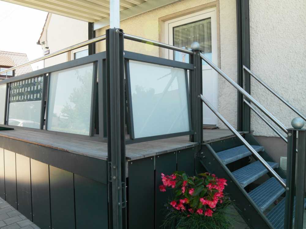 -Balkon mit Tisch und 6 Stühlen