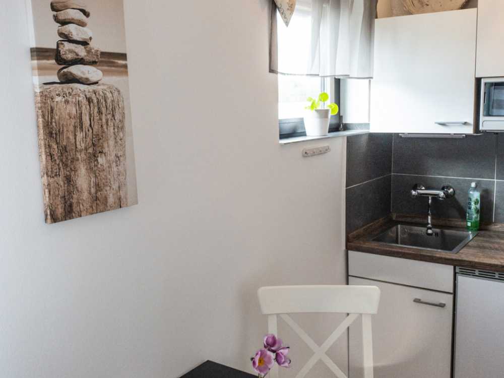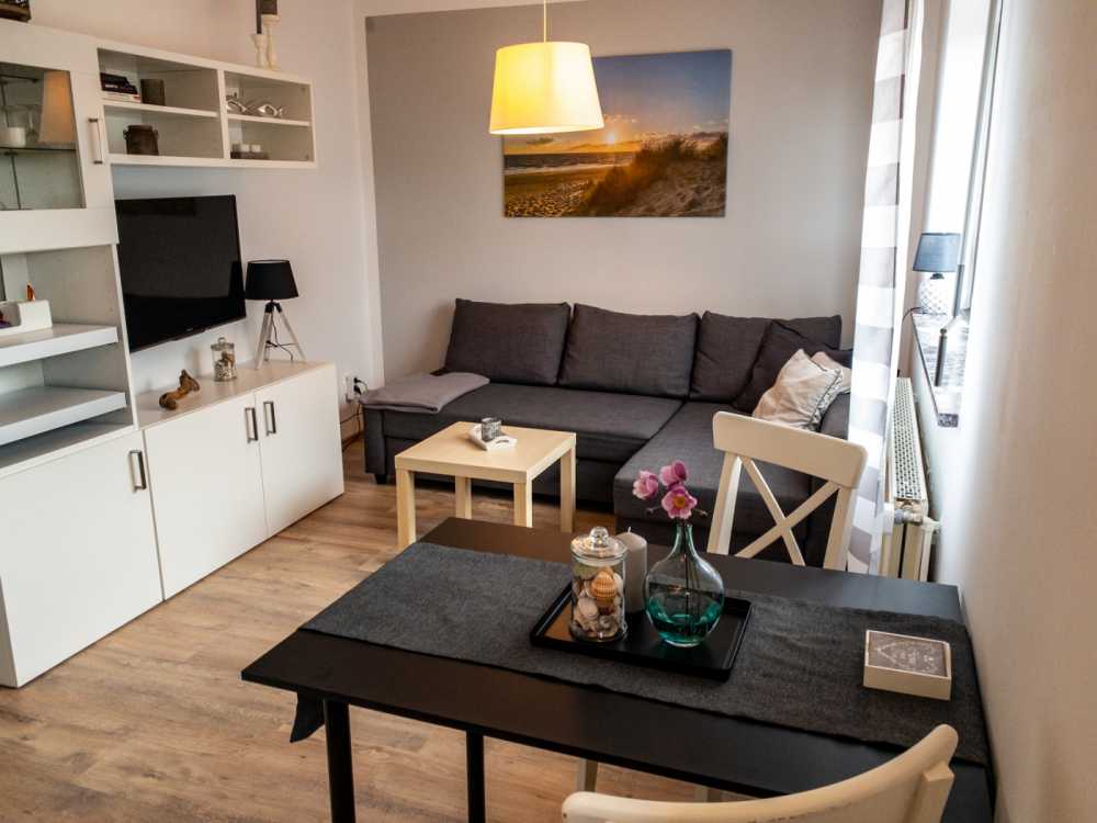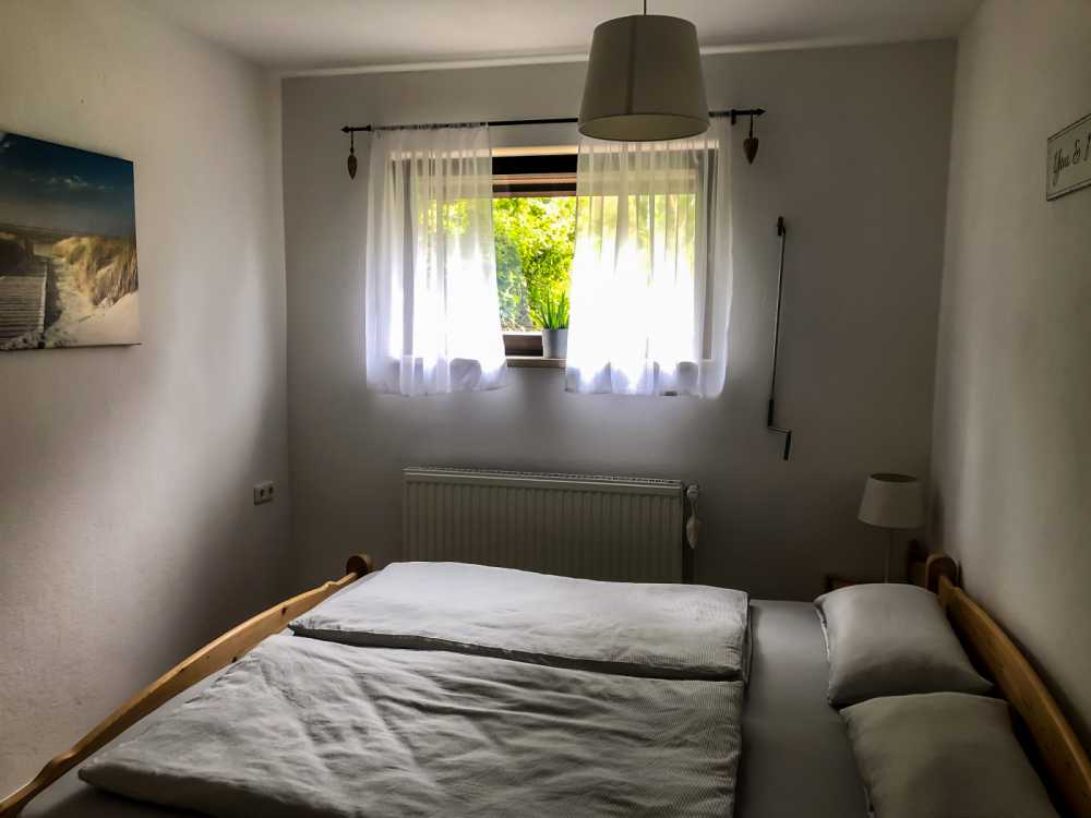Die Ferienwohnung besteht aus einem Wohnzimmer mit einer kleinen Küchenzeile und dem Schlafsofa für max. zwei Kinder. Das separate Schlafzimmer hat ein 1,80 x 2,00m großes Bett und einen großen Kleiderschrank. Das Badezimmer hat eine Dusche, WC, Waschbecken und einen Handtuchheizkörper.