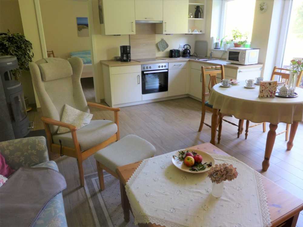 Im Wohnzimmer erwartet Sie zudem ein Sat-TV und eine Stereoanlage, einige Bücher sind auch vorhanden.