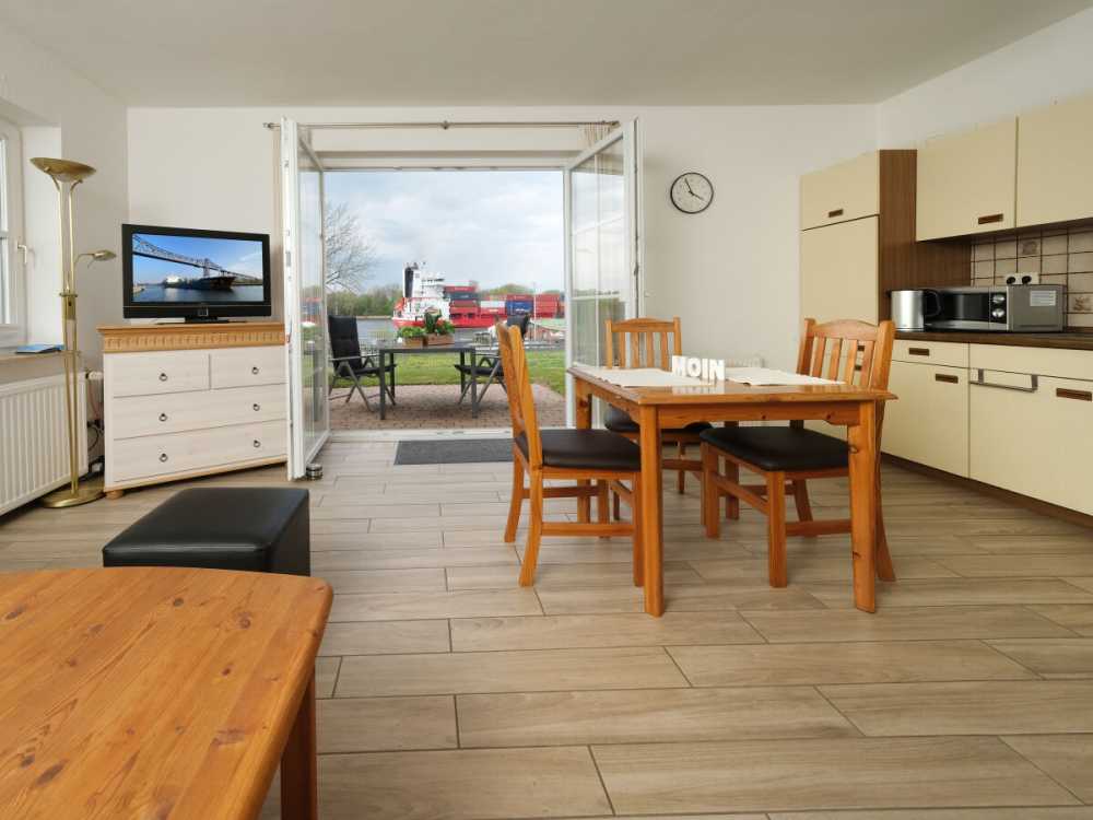 Die Lieblingswohnung vieler Stammgäste ist die Wohnung "Zander". Genießen Sie den freien Blick auf den Kanal und den Schiffsverkehr. Entweder vom Sofa aus oder auf Ihrer eigenen Terrasse. Bis zum NOK sind es nur 80 Meter.