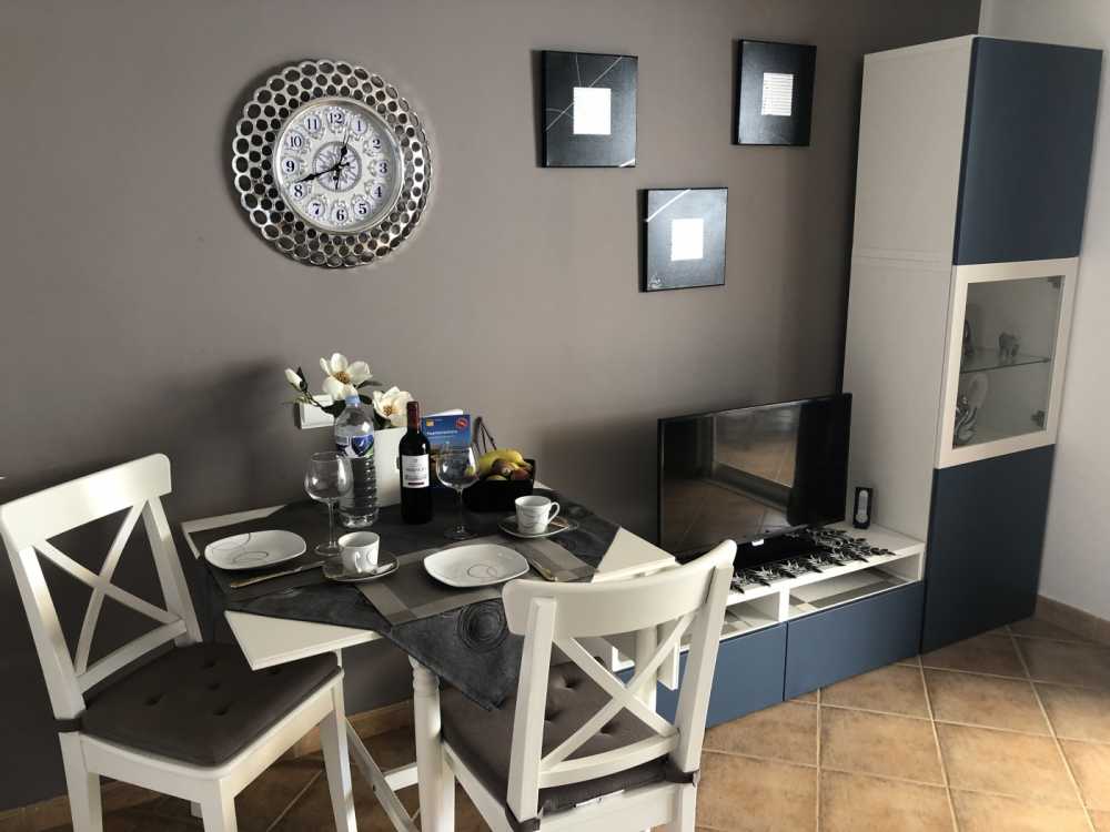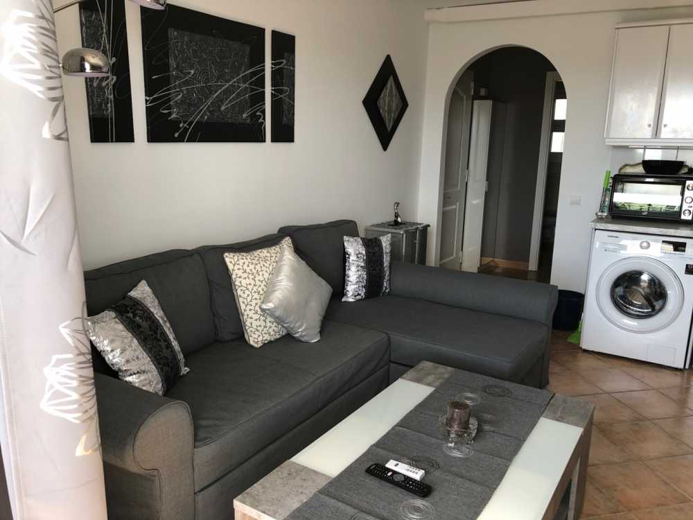 Die komfortabel und modern eingerichtete und komplett renovierte (2018 ) Ferienwohnung liegt im Untergeschoß in der Hibiscus Anlage. Auf ca. 45 qm Fläche befinden sich ein Wohn/Esszimmer mit einer integrierten Küche, 1 Schlafzimmer mit großem Bett ( 200 x 180 ), zwei TV Fernseher und ein Bad mit Dusche. Auf dem Balkon befinden sich eine Markise , Tisch und 4 Stühlen, 2 Sonnenliegen mit Auflagen.