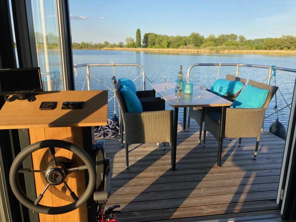 Genieße zu zweit, mit deiner Familie oder Freunden die Ruhe der idyllischen Flusslandschaft Brandenburgs auf einem unserer modernen und führerscheinfreien Hausboote. Sonne dich entspannt auf der großen Dachterrasse, erfrische dich in der Havel und erlebe schöne Abende auf dem Wasser.