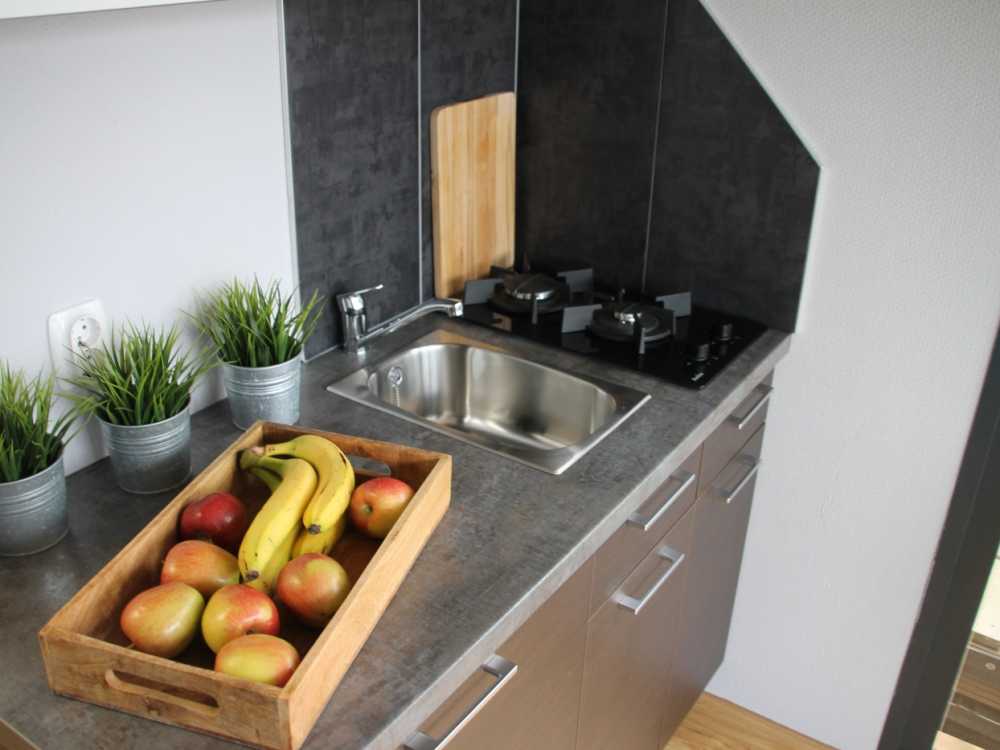 - Küche mit Gasherd & Kühlschrank