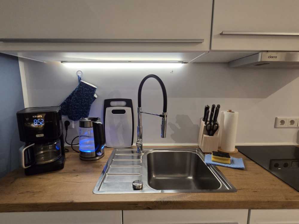 Voll ausgestattete Küchenzeile mit Geschirrspüler, Backofen, Kühlschrank