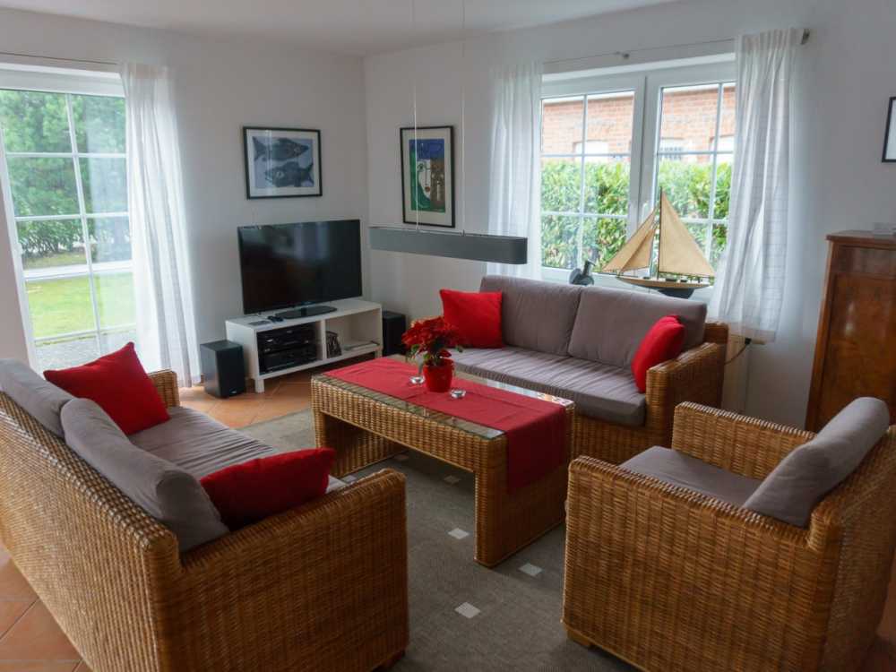 Der schön angelegte und durch eine Lorbeerhecke sichtgeschützte Garten lädt zum Entspannen im Strandkorb, Sonnen, Spielen und Grillen ein. Und unmittelbar hinter dem Reethuus erstreckt sich der Alte Deich, über den Sie direkt ins Naturschutzgebiet Leyhörn und zum nur 500 m entfernten Badesee (mit Strand und ausgezeichneter Süßwasserqualität) gelangen.