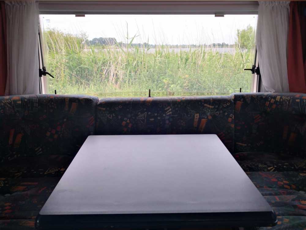 • Anzahl der Betten: 1 Doppelbett ca. 135 x 200 cm + 1 Einzelliege ca. 75 x 200 cm im Schlafraum - weitere Schlafmöglichkeit durch Umbau der Rundecke im vorderen Bereich