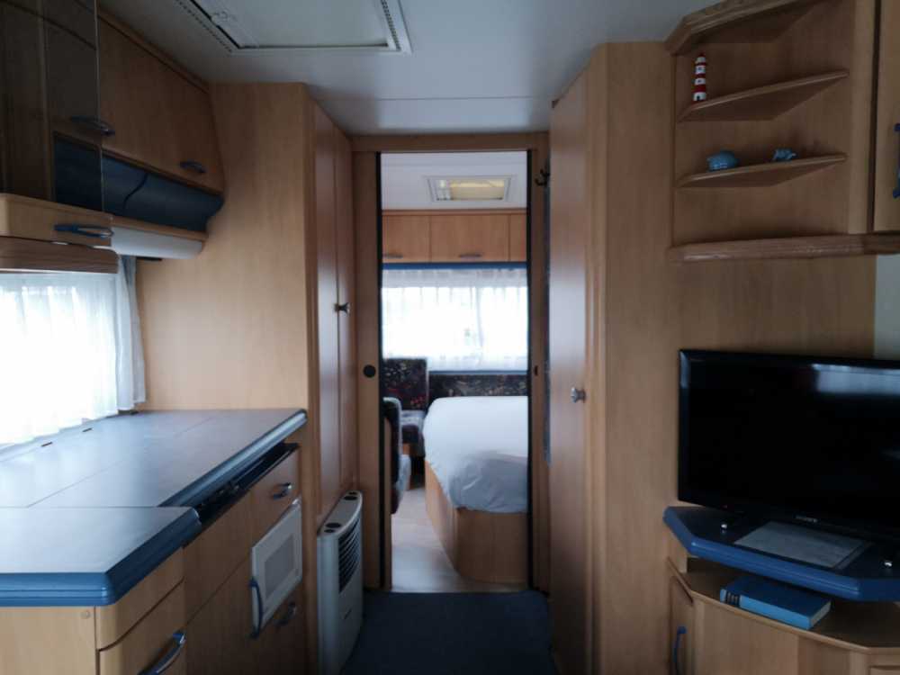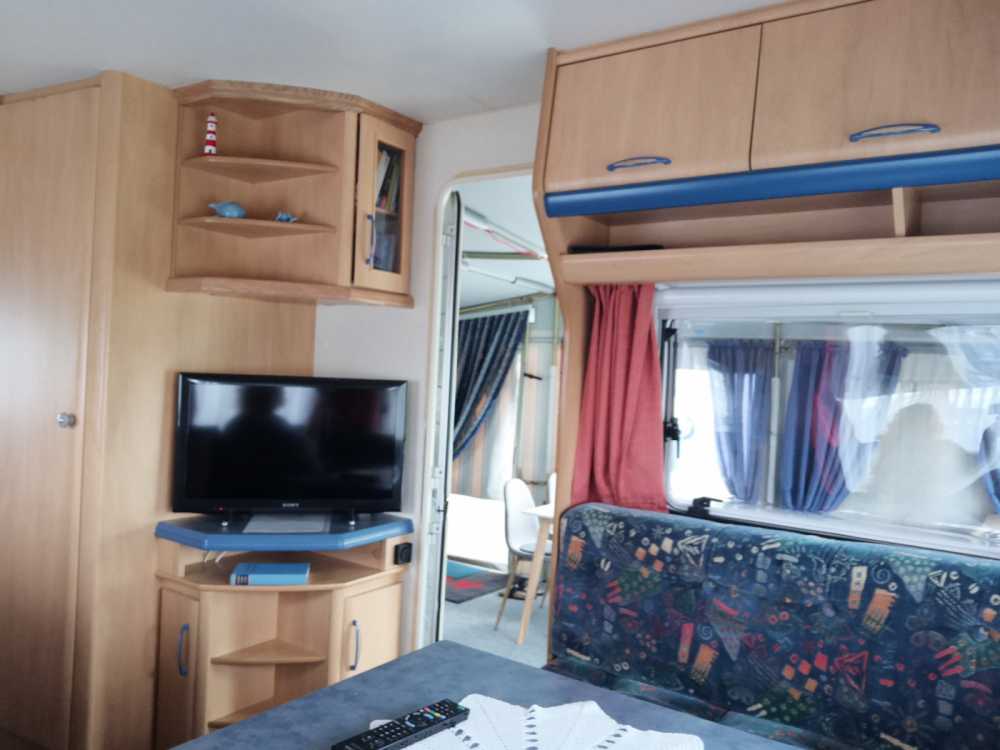 • Ausstattung Wohnwagen: Truma Gasheizung, SONY Smart TV, Mikrowelle, diverse Spiele, Infomappe für Unternehmungen, Restaurants etc., Feuermelder sowie CO2-Wächter